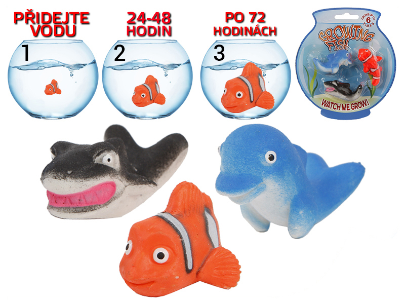 Rybičky rostou, jako by byly živé! Naplň nádobu vodou, ponoř a sleduj. Rybky začínají růst už po 24 hodinách, ale plné velikosti dosáhnou až po 72 hodinách. Po vytažení z vody stačí ryby osušit a po pár dnech se vrátí do původního stavu. číst celé