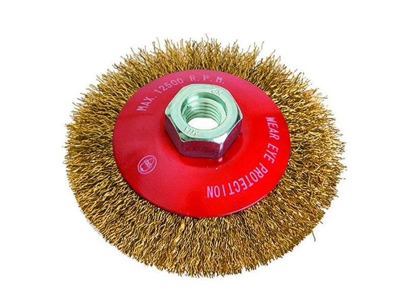 Kartáč miskový s mosaznými vlnitými drátky, uchycení M14, miskový, vhodné pro nerezové materiály. Instruktážní video