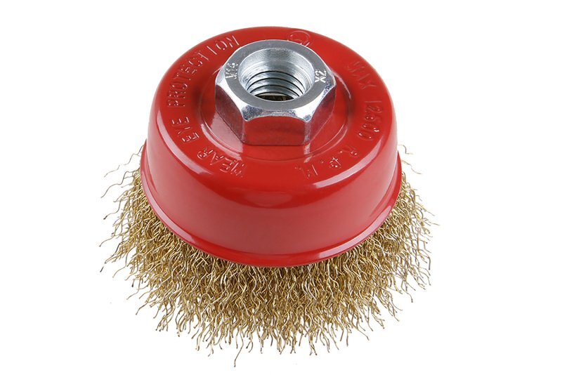 Rotační kartáč - hrnkový, kartáče FESTA zaručují kvalitní použité materiály i zpracování, vlnitý drát - pomosazený 0,3mm, průměr 65mm, uchycení M14*2, počet drátů 1350, délka drátů 23mm, maximální otáčky za min. 12500, použití : pro odstranění rzi, barvy, leštění Instruktážní video