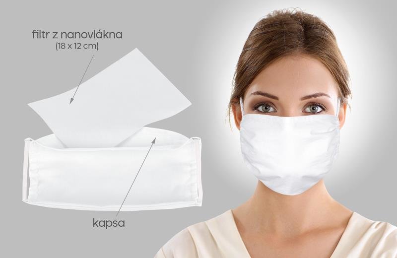 Ústní rouška s vloženým nanovlákenným filtrem - 1335/201 - bílá - 15x22cm