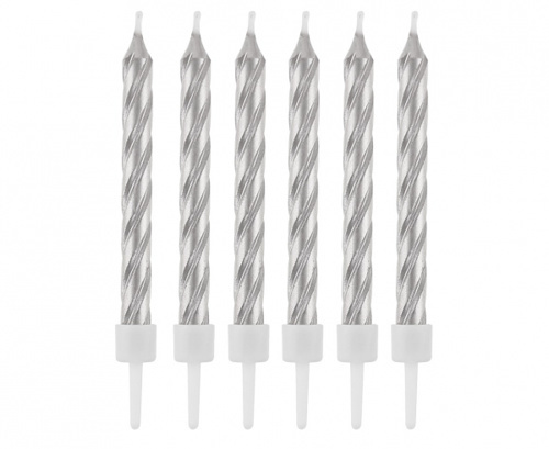 Dortové svíčky ve stříbrné barvě, vhodné na oslavy narozenin, výročí i jiné party. Balení: 12 ks Velikost: 6 cm číst celé