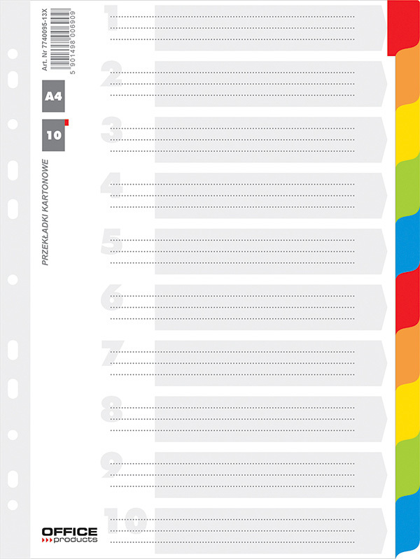Office Products rozlišovač s laminovanými indexy, A4, karton, 10 listů, bílý