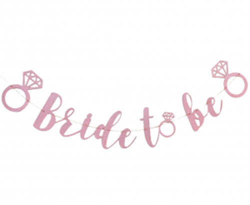 Party nápis Bride to be - Růžový brokát - 300 cm