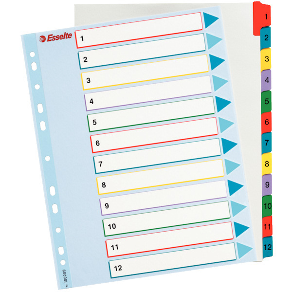 Przekładki A4 1-12 karton Mylar Maxi z lamin. kartą opisu, Esselte