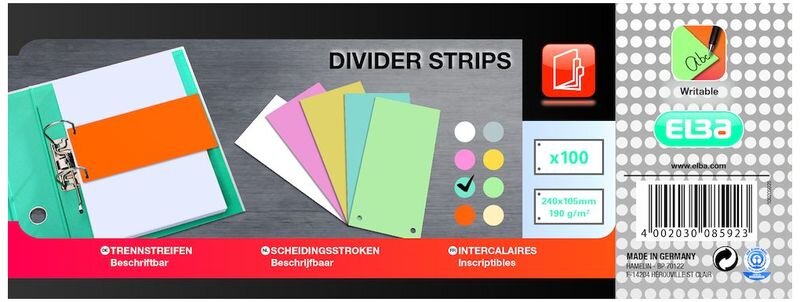 Przekładki 1/3 A4 niebieski op. 100 szt., Oxford
