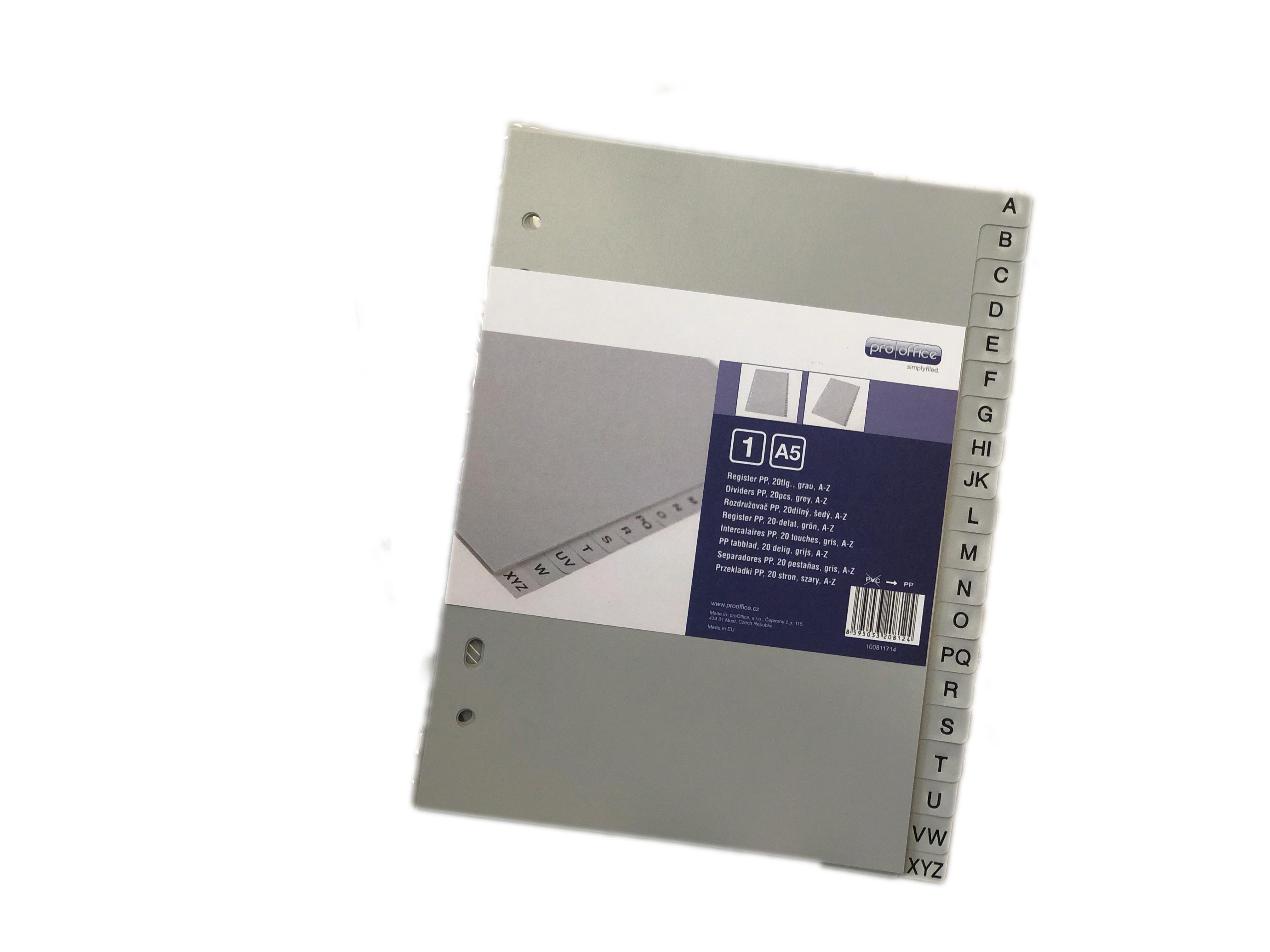 Udržujte své dokumenty perfektně uspořádané! ProOffice rozřaďovač A5 s označením A-Z je ideálním pomocníkem pro rychlou orientaci a přehled ve vašich důležitých dokumentech.