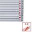 Rejstříky pro číselné roztřídění dokumentů založených v kapsách v pořadačích či deskách do formátu A4 maxi s popisovatelnou titulní stranou. Formát A4 maxi zpřehledňuje orientaci v dokumentech založených v závěsných kapsách. Zesílená multiperforace plastovým proužkem na titulní straně.. 20 dělicích listů se štítky anglické abecedy A-Z pro rychlou orientaci v obsahu. Univerzální multiperforace (11 děr) pro založení do pákového i kroužkového pořadače. Vyrobeno z Polypropylenu (PP) tloušťky 0,12 mm. . . . . . .