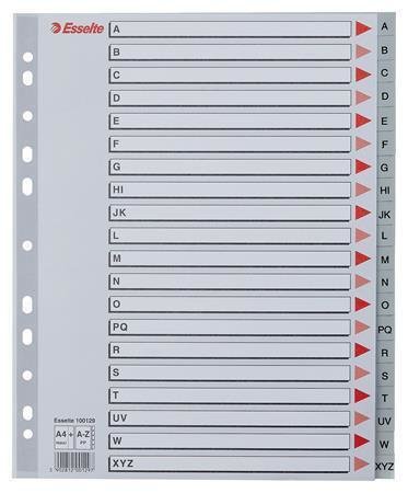 Barevné rejstříky, šedá, A4 Maxi, plast, A-Z, ESSELTE
