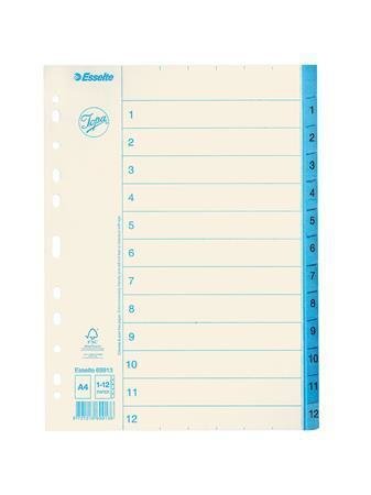 Rejstříky, bílá, A4, karton, 1-12, ESSELTE