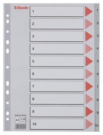 Rejstříky, šedá, A4, plast, 1-10, ESSELTE