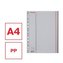 Rejstříky pro číselné roztřídění dokumentů v pořadačích či deskách do formátu A4 s popisovatelnou titulní stranou. Zesílená multiperforace plastovým proužkem na titulní straně. 31 dělicích listů se štítky 1-31 pro rychlou orientaci v obsahu. Univerzální multiperforace (11 děr) pro založení do pákového i kroužkového pořadače. Pro formát A4. Vyrobeno z Polypropylenu (PP) tloušťky 0,12 mm. . . . . . .