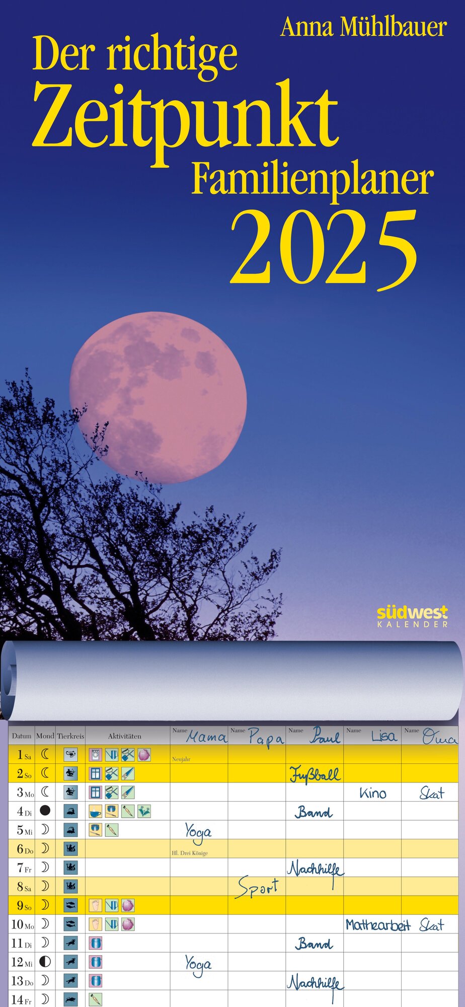 Der richtige Zeitpunkt Familienplaner 2025 - Monats-Wandkalender zum Aufhängen, mit Spiralbindung, 22,4 x 48,5 cm (německy)