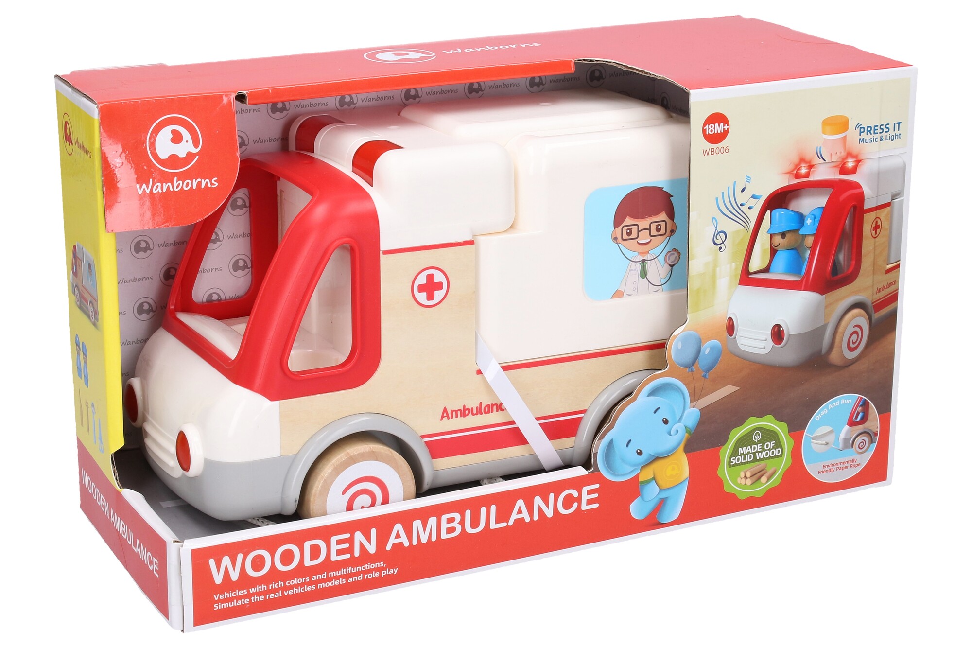 Sanitka dřevo/plast s efekty 21cm je ideální volbou pro všechny malé záchranáře a milovníky hraček na kolečkách. Díky kombinaci kvalitního dřeva a plastu nabízí odolnou konstrukci, která vydrží i časté hraní.