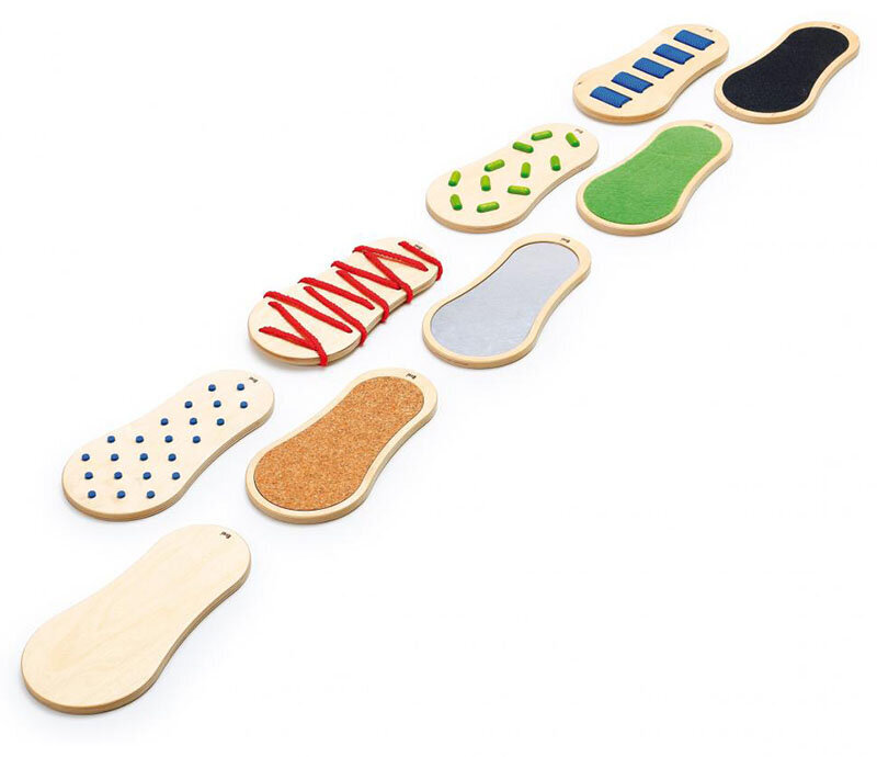 SensoPath XL to stworzona głównie z drewna 9 elementowa zabawka sensoryczna niemieckiej marki Erzi. Wszystkie elementy zestawu różnią się od siebie pod względem struktury powierzchni, co pobudza receptory i stymuluje zmysł dotyku.