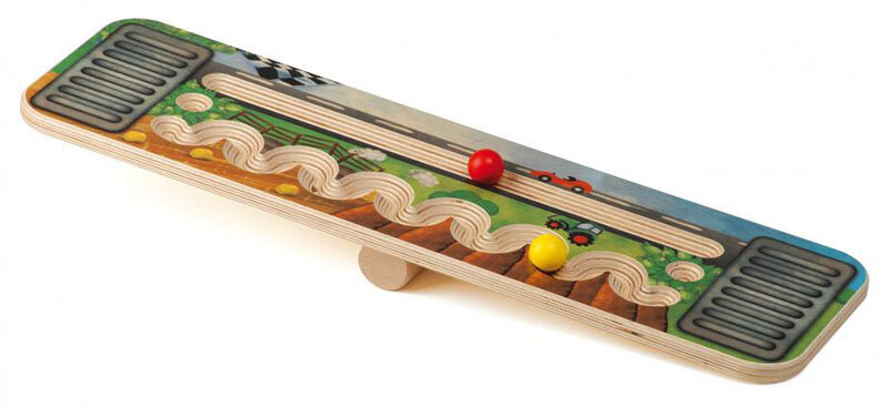 Balancing Board Race to kolejna propozycja niemieckiej marki Erzi, wspierająca rozwój ruchowy dzieci. To także pełna emocji zabawa, która przyniesie każdemu maluchowi wiele radości. Ta wykonana z wysokiej jakości sklejki brzozowej deska pokryta została farbami w 100% bezpiecznymi dla zdrowia. Powierzchnia, która ma bezpośredni kontakt ze stopami dziecka wykazuje właściwości antypoślizgowe.