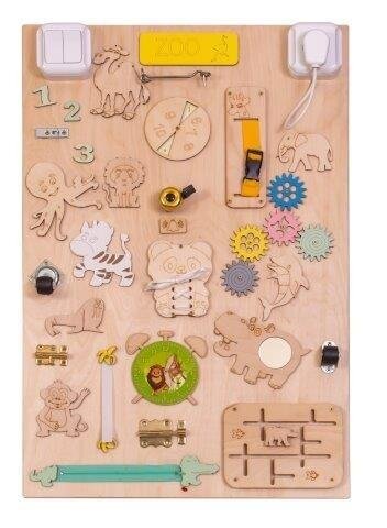 Tablica kolorowa rozkładana - jedna strona manipulacyjna, druga strona kredowa Wyposażenie strony manipulacyjnej:
