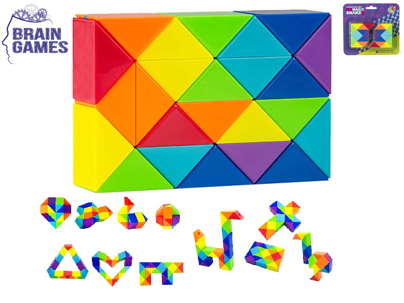 Tato sada obsahuje dvě skládací hady složené z 12 dílků, které můžete spojit do jednoho delšího hada. Díky možnosti otáčení dílků o 360° si snadno vytvoříte různé 3D tvary a vzory. Hlavolamy nejenže zabaví, ale také rozvíjejí logiku, strategické myšlení a jemnou motoriku u dětí i dospělých.