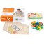 V sadě najdete vše potřebné k okamžité hře a učení: šesti dřevěných karet s jedenácti různými úkoly, sto plastových tvarů ve čtyřech živých barvách a praktický magnetický úložný box, který pomůže udržet pořádek a usnadní přenášení.