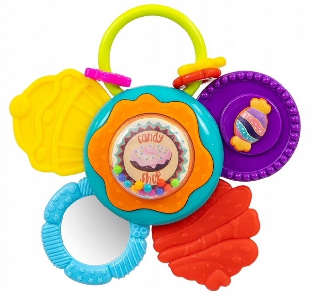 - Funkce: zrcátko, kousátko, chrastítko, pískací zvuk.