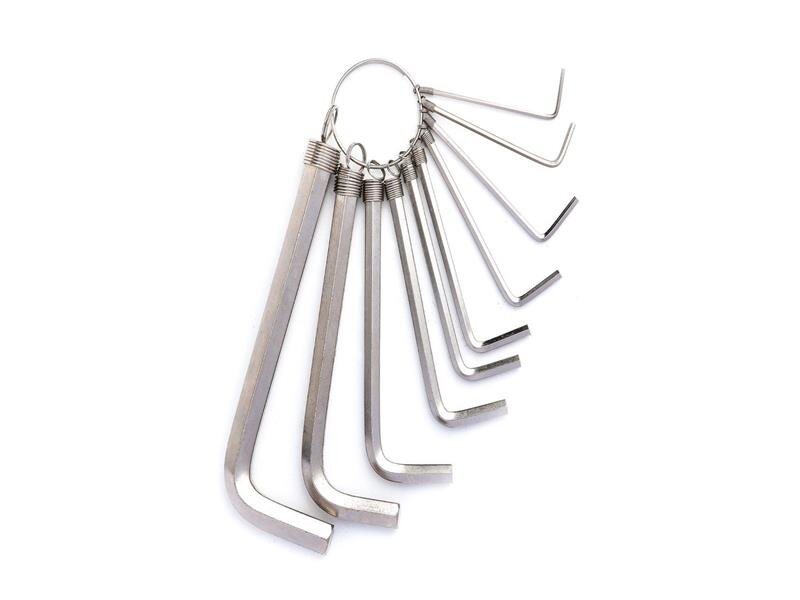 10 imbusových klíčů různých velikostí. Přiložený kovový kroužek usnadňuje skladování a přepravu nástrojů a zároveň je chrání před ztrátou. S úspěchem je využijete při opravách nábytku, zábradlí nebo plotů. Díly vyrobené z oceli zůstanou dlouho odolné vůči mechanickému poškození - i při častém používání. Velikost: 1,5 mm, 2 mm, 2,5 mm, 3 mm, 3,5 mm, 4 mm, 5 mm, 6 mm, 8 mm, 10 mm