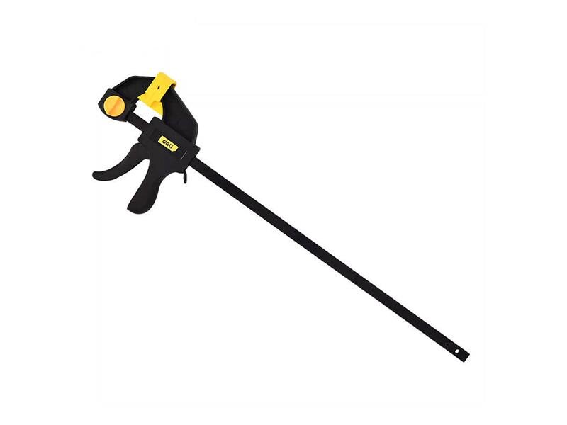 Truhlářská svěrka Deli Tools je vyrobena z oceli A3, která zaručuje odolnost, použití pryžových dílů zajišťuje stabilitu a usnadňuje použití. Model výrazně usnadňuje rychlé a bodové upevnění při lepení a podpírá díly. Osvědčí se při tesařských a zámečnických pracích.