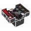 Kufřík v černo-stříbrné barvě chrání vyztužení v rozích. Samovolnému otevření brání pevné kovové klipsy a uzamykání na klíč (v balení dva kusy). Přenášení usnadňuje integrované madlo a nastavitelný popruh.