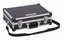 Kufřík v černo-stříbrné kombinaci barev chrání vyztužení v rozích. Samovolnému otevření brání pevné kovové klipsy a uzamykání na klíč (v balení dva kusy). Přenášení usnadňuje integrované madlo a nastavitelný popruh.