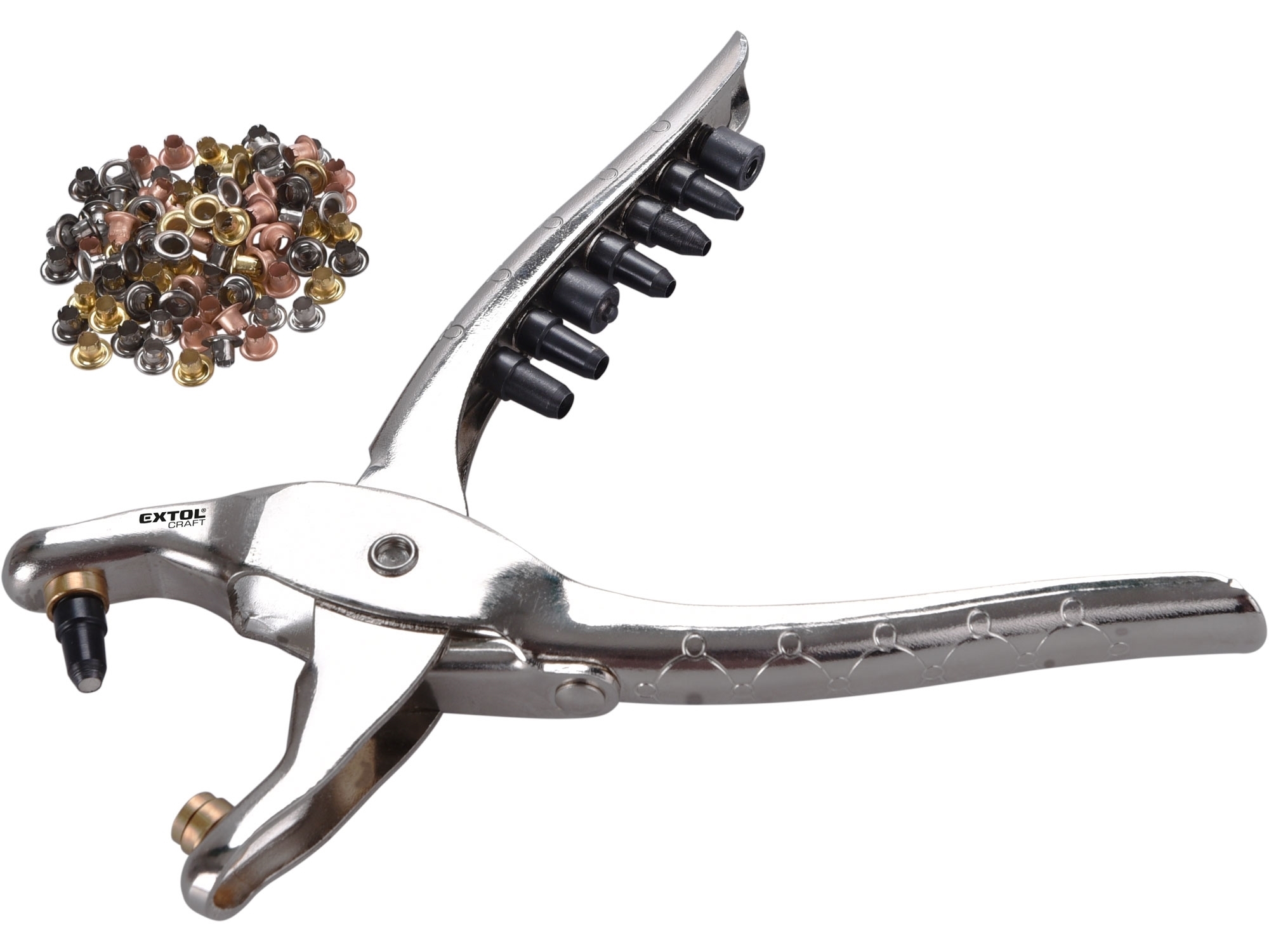 Objevte spolehlivost a pohodlí v jednom - kleště děrovací-drukovací sada se 100ks oček vám umožní snadno a rychle pracovat s materiály různých tlouštěk s průměrem oček od 2,5 do 5 mm.