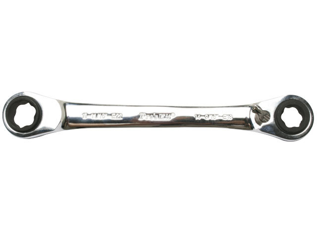 Univerzální očkový klíč s ráčnou 12 velikostí v jednom nastavitelném ráčnovém klíči. Velmi snadné použití a vysoká přizpůsobivost Kolečko s 72 zuby pro 5 stupňů otáčení pro větší účinnost práce v omezeném prostoru Vyrobeny z odolné kalené Cr-V oceli s vyhlazeným povrchem Vysoký krouticí moment Směr pohybu dopředu, dozadu nebo fixní Vložky o velikosti: 14mm, 16mm, 17mm, 19mm. Délka nástroje: 230mm