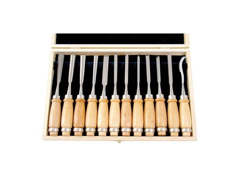 Tato sada obsahuje 12 kusů dlát s různými tvary a šířkami, které uspokojí širokou škálu řezbářských potřeb. Dláta jsou vyrobena z kvalitní CrV oceli a tvrzená na tvrdost HRC 58-60, což zajišťuje dlouhou životnost a odolnost proti opotřebení. Díky délce 200 mm skvěle padnou do ruky a umožní precizní ovládání při řezbářských technikách. Všechny nástroje jsou uloženy v elegantní dřevěné krabičce, která zaručuje jejich bezpečné a přehledné uskladnění.