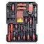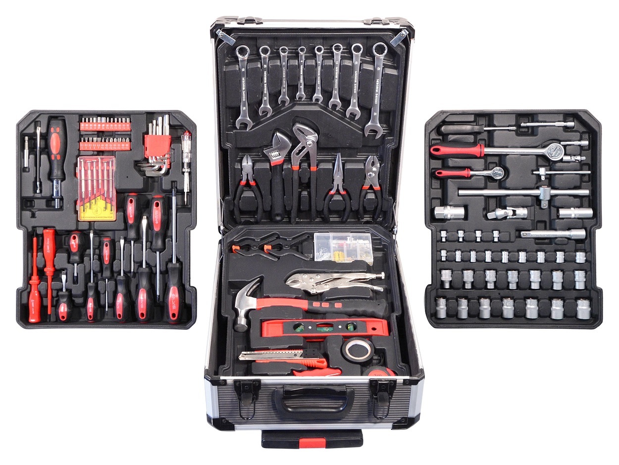 Praktický hliníkový kufr, 186 dílů kvalitního nářadí, vše uspořádané v přehledných pozicích - 4 nástrojová plata. Kufřík je vybaven teleskopickým úchytem a kolečky, díky kterým je manipulace s celou sadou nářadí velice snadná.Sada obsahuje celou řadu kleští, šroubováků, gola klíčů, kladivo, vodováhu, stranové i imbus klíče, bity, základní spojovací materiál a celou řadu dalšího nářadí, které je vhodné pro použití jak doma, v garáži, tak i na cestách.