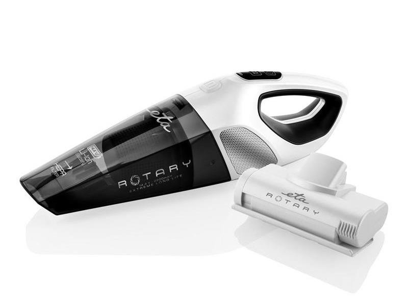 Hledáte výkonného a kvalitního pomocníka pro dokonalý domácí úklid? Ruční vysavač nové generace ETA Rotary 1425 90000 vás nadchne silným sacím výkonem a elektrickým rotačním kartáčem, který zajistí ještě efektivnější sběr a vyčesání nečistot. O jejich filtraci se následně postará účinný HEPA filtr. Kvalitní 14,4V Li-ion akumulátor vám umožní až 25 minut nepřetržitého vysávání a následně se znovu plně nabije za pouhých 5 hodin. Díky nízké hmotnosti, malým rozměrům a ergonomicky tvarované rukojeti se navíc s tímto příručním pomocníkem příjemně manipuluje. Stačí pouze zvolit tlačítko ON/OFF a vysavač začne pracovat, tlačítko nemusíte po celou dobu křečovitě mačkat. Sesbíraný prach a nečistoty následně putují přímo do transparentní nádobky o objemu 400 ml, která vás zbaví nutnosti nákupu a výměny prachových sáčků. Vysavač disponuje dobíjecí základnou, která slouží nejen k nabíjení, ale i k jeho praktickému uskladnění spolu s příslušenstvím. Na nutnost nabíjení vás upozorní světelná kontrolka. Vedle vysavače si v balení domů pořídíte i rotační turbokartáč s přímým pohonem. Dále pak štěrbinovou hubici a kartáček s jemnými štětinkami. ETA také nabízí možnost prodloužené záruky na motor až 3 roky po registraci. Vysavač je vybaven kvalitním 14,4V Li-ion akumulátorem, který vám umožní až 25 minut nepřetržitého vysávání a následně se znovu plně nabije za pouhých 5 hodin. Rotační turbokartáč s přímým pohonem je ideální pro vysávání čalouněného nábytku či interiéru automobilu. Štěrbinovou hubici oceníte při vysávání úzkých a těžko přístupných míst (žebra radiátorů či prostory za nábytkem). Kartáček s jemnými štětinkami využijete při úklid míst, která potřebují šetrně zbavit prachu nebo pavučin.