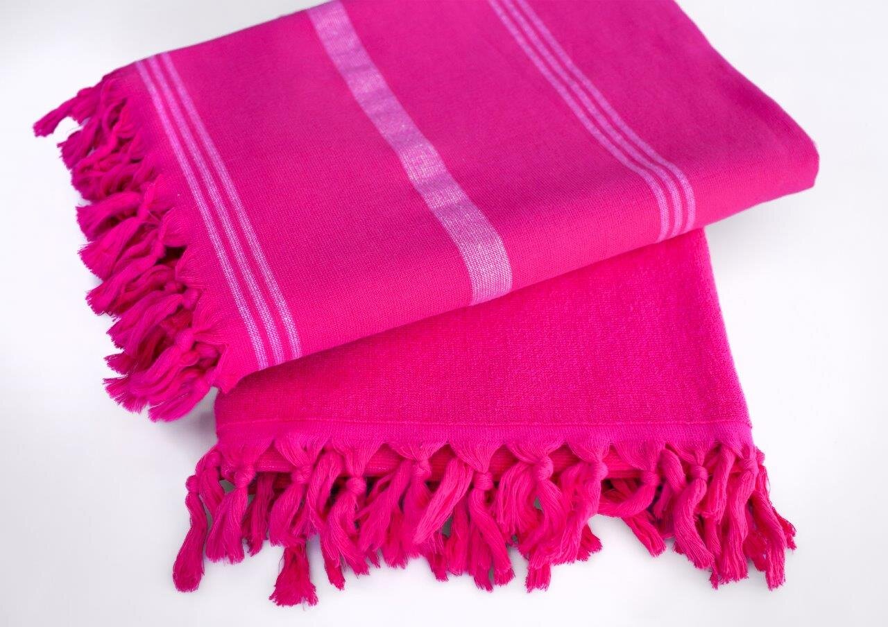 RĘCZNIK PLAŻOWY Z FRĘDZLAMI RELAX 90X170 cm ROŻ W PASKI