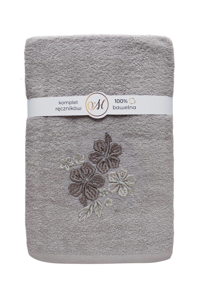 RĘCZNIK KPL.MARIBELLA 3 SZT./30X50/50X100/70X140/ FROTTE HAFT 004 HIBISKUS JASNY SZARY