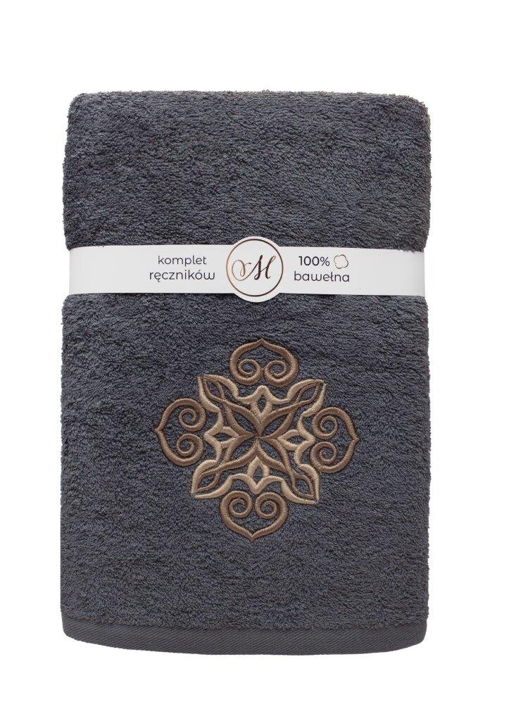 RĘCZNIK KPL.MARIBELLA 3 SZT./30X50/50X100/70X140/ FROTTE HAFT 005 MANDALE CIEMNY SZARY