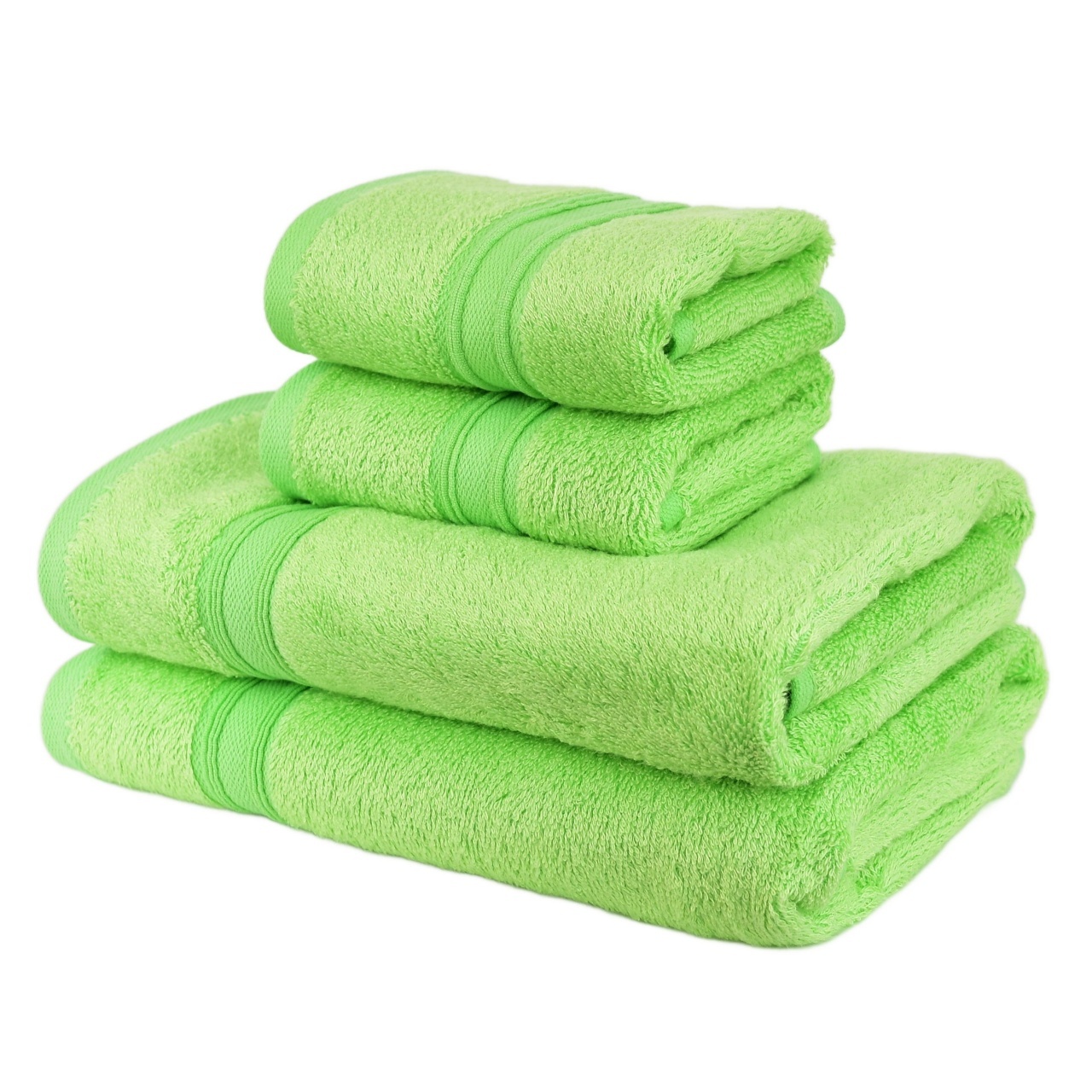 Sestava obsahuje 2x ručník na ruce (30x50cm), 2x ručník (50x100cm) ve světle zelené barvě.