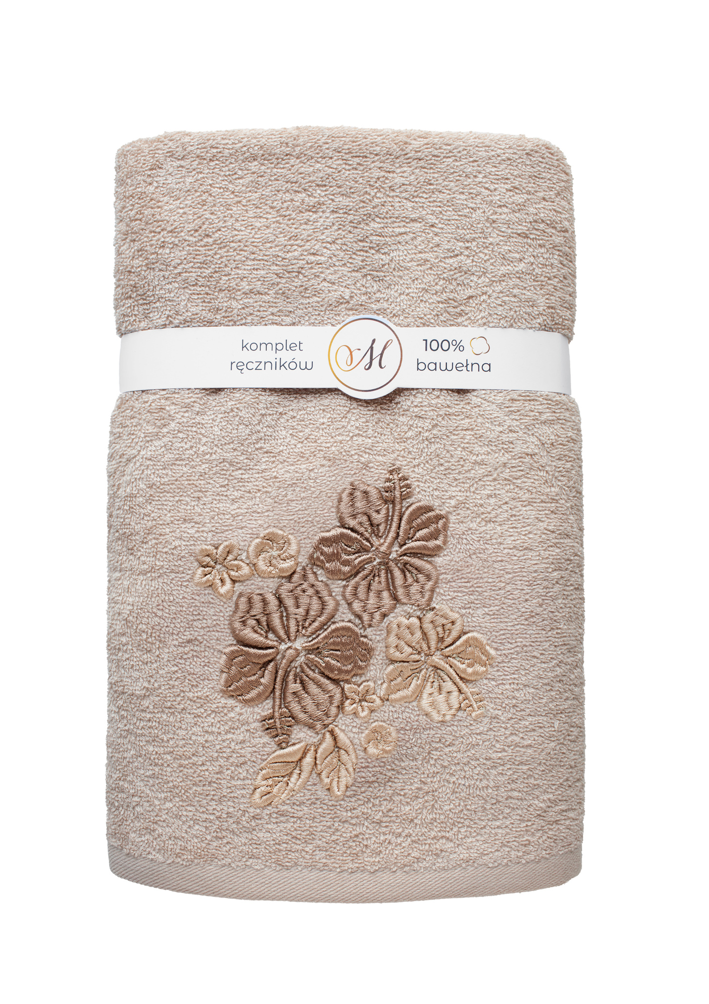 RĘCZNIK KPL.MARIBELLA 3 SZT./30X50/50X100/70X140/ FROTTE HAFT 004 HIBISKUS KAWA Z MLEKIEM