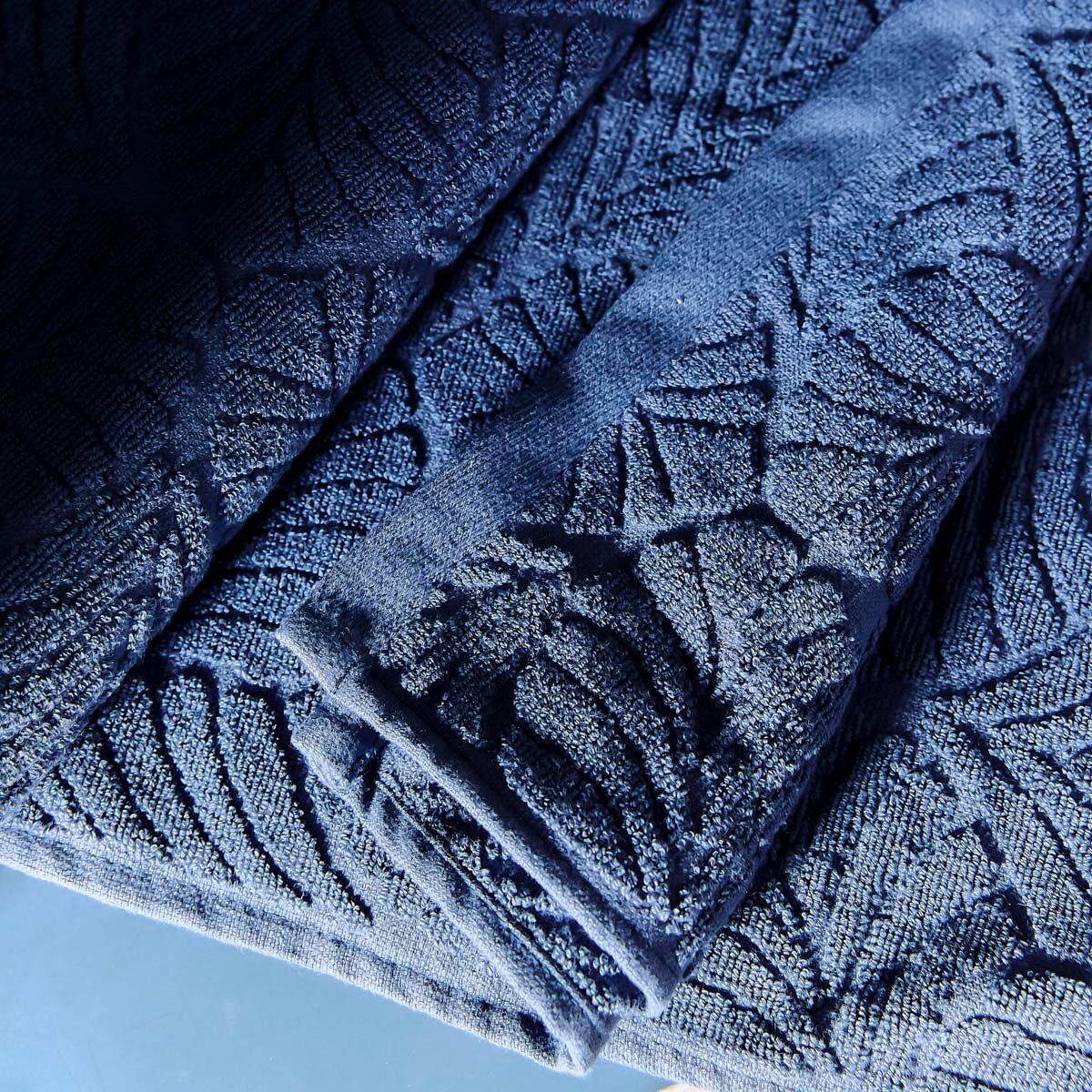 Ręcznik ESTRELLA w pięknym odcieniu niebieskiego, ozdobiony subtelnym motywem liści, to doskonały wybór dla osób poszukujących stylu i jakości. Dzięki większemu rozmiarowi świetnie sprawdzi się zarówno w łazience, jak i podczas wyjazdów. Jego uniwersalny design pasuje do każdej łazienki, nadając jej elegancki, nowoczesny akcent.