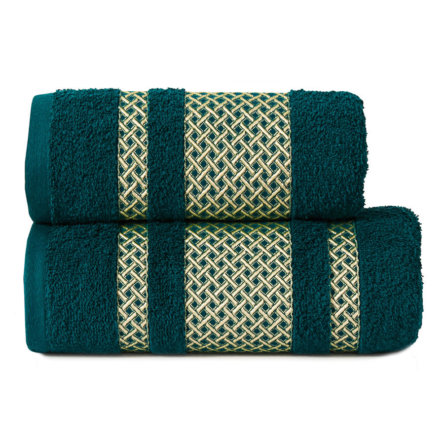 Bavlněná froté osuška s bordurou LIONEL 70x140 cm, petrolejová/zlatá, 450 gr Mybesthome