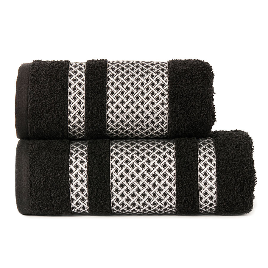 Bavlněná froté osuška s bordurou LIONEL 70x140 cm, černá/stříbrná, 450 gr Mybesthome
