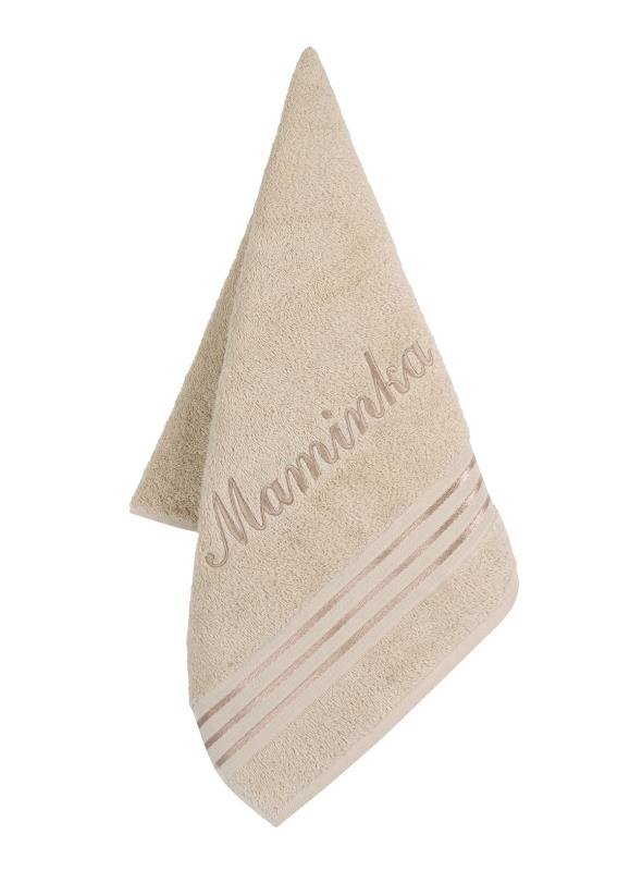 Froté ručník kolekce Linie s výšivkou Maminka - béžová - 50x100 cm