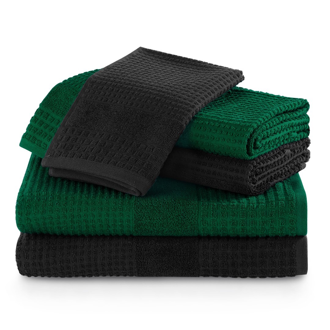 Dárkový set 6 ks ručníků 100% bavlna PIANO 2x ručník 50x90 cm, 2x osuška 70x140 cm a 2x ručník 30x50 cm zelená/černá 460 gr Mybesthome