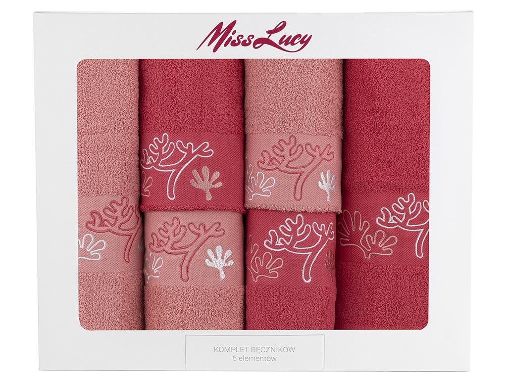 ŠESTI DÍLNÁ SADA VYŠÍVACÍCH RUČNÍKŮ V DEKORATIVNÍ KRABIČCE, 100% BAVLNA, 480G, ŠEST RUČNÍKŮ VE VELIKOSTÍCH; 30X50CM, 50X90CM, 70X140CM