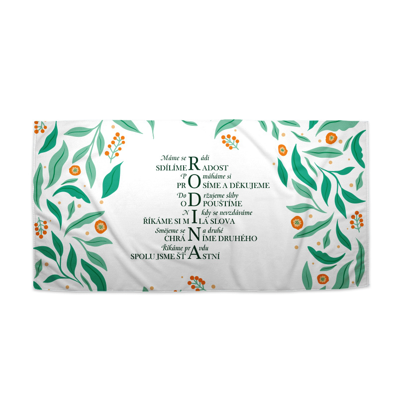 Ručník s originálním motivemPotisk se nachází na vrchní straně ručníku, který je 100% polyester. Spodní strana je čistě bílá 100% bavlna. Tento motiv nabízíme ve třech velikostech a to 30x50 cm, 50x100 cm nebo 70x140 cm. Je vyroben z měkkého, příjemného materiálu. Vyniká povrchovou úpravu proti tvoření žmolků. Okraje jsou prošívané.Ručník doporučujeme prát při teplotě 40°C, neškrobit a nesušit.(velikost se může lišit o +- 5 %)