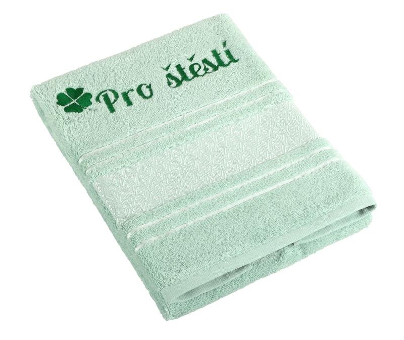 Froté ručník mozaika s výšivkou Pro štěstí - mint - Ručník - 50x100 cm
