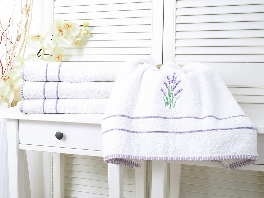 B.E.S. - Petrovice, s.r.o. Ručník s výšivkou 50x90 Levandule - Bílá