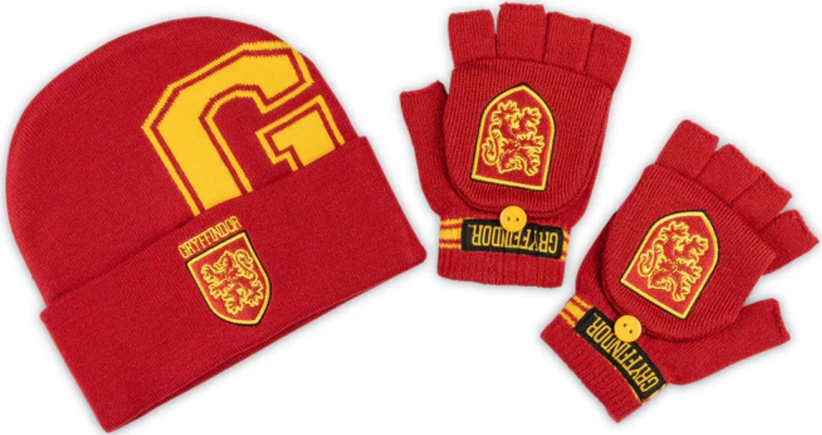 Zimní set obsahující čepici a rukavice inspirované kolejí Gryffindor (Nebelvír) z populární ságy Harry Potter. Měkká hřejivá akrylová příze je pevně pletená, aby udržela hlavičku a ručičky každého menšího i většího fanouška v teple v chladném počasí.