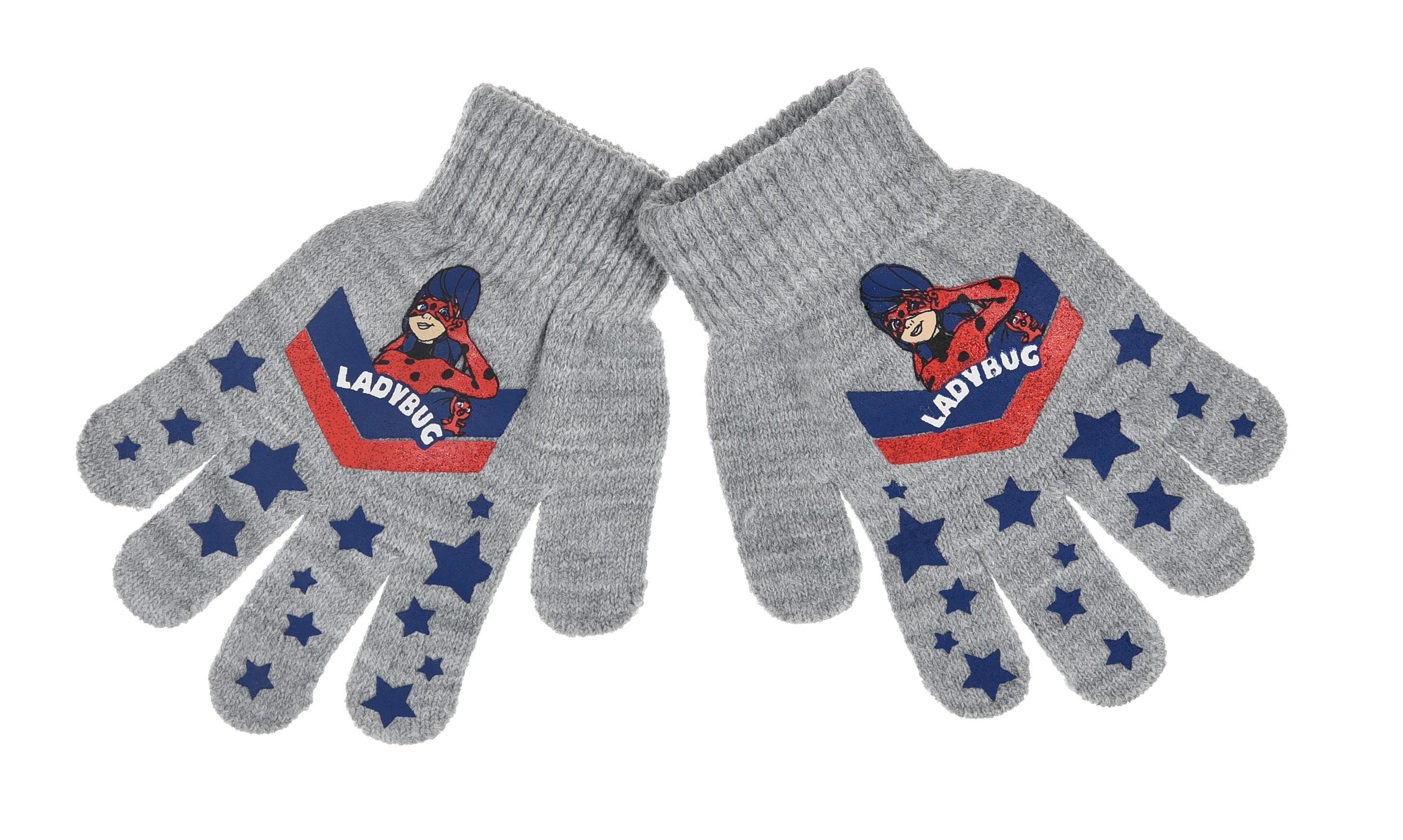 Dívčí rukavice Kouzelná Beruška. Uni velikost cca 3-8 let.Materiál: 50% polyester, 47% acrylyc, 3% elastan.Barva: šedá. Oficiální licence.