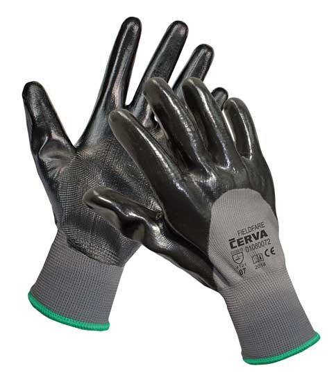 CERVA - FIELDFARE rukavice pletené bezešvé máčené ze 3/4 v černém nitrilu - velikost 10