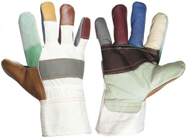 FIREFINCH - rukavice zimní z různobarevné lícové nábytkové hověziny v dlani s teplou podšívkou a bavlněnou tkaninou na hřbetu a manžetě velikost 11
